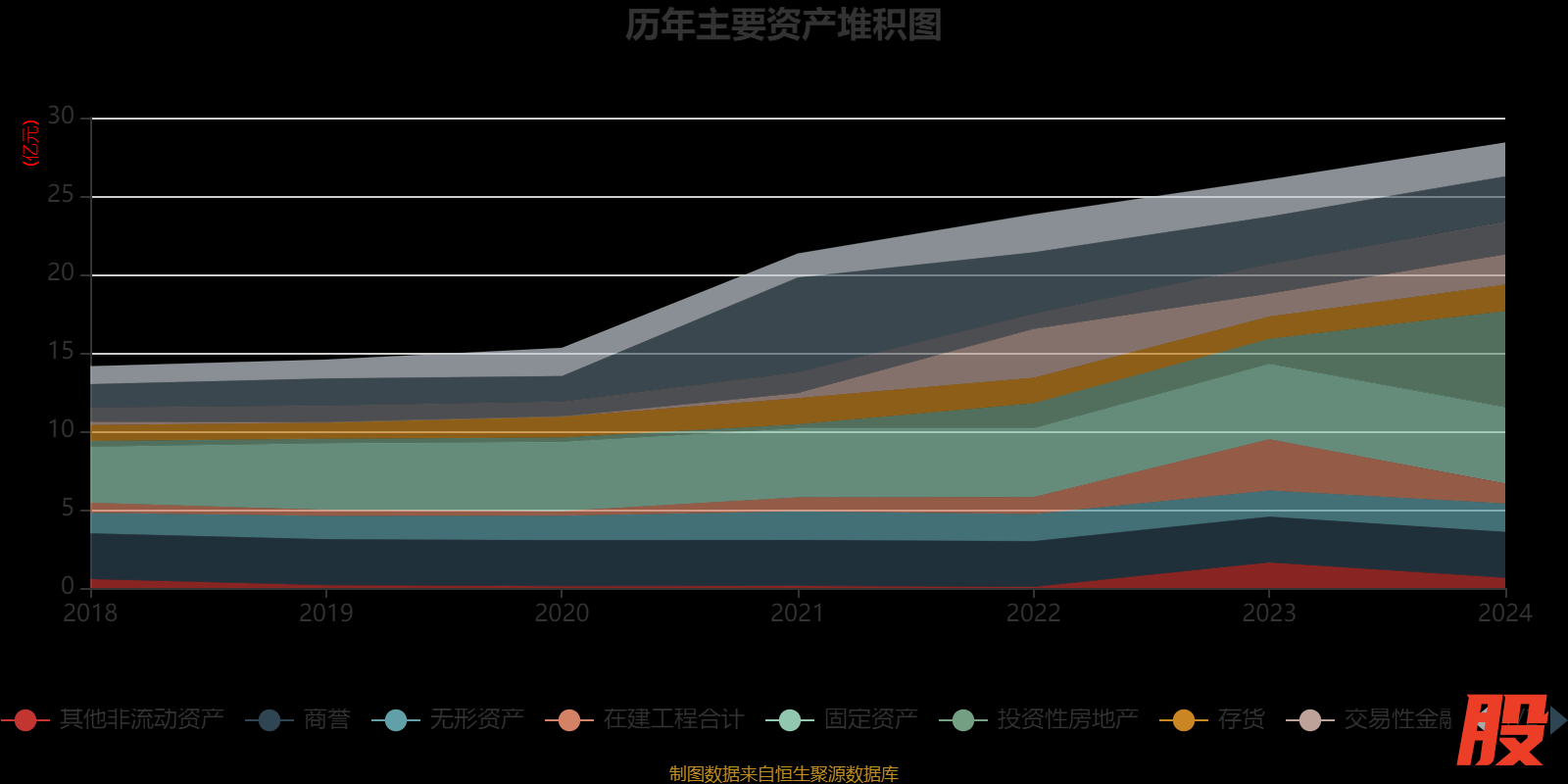 资产重大变化方面,截至2024年末,公司投资性房地产较上年末增加285.89%,占公司总资产比重上升15.47个百分点;在建工程合计较上年末减少60.64%,占公司总资产比重下降8.01个百分点;其他非流动资产较上年末减少59.93%,占公司总资产比重下降3.93个百分点;货币资金较上年末减少5.03%,占公司总资产比重下降1.5个百分点。