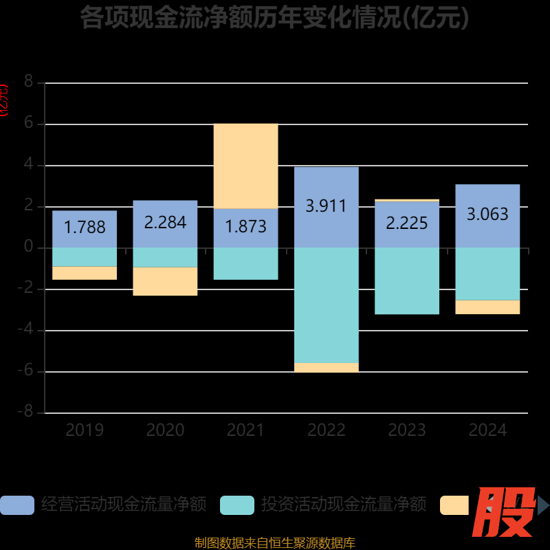 截至2024年,公司经营活动现金流净额为3.06亿元,同比增长37.64%;筹资活动现金流净额-6770.87万元,同比减少7936.91万元;投资活动现金流净额-2.56亿元,上年同期为-3.24亿元。