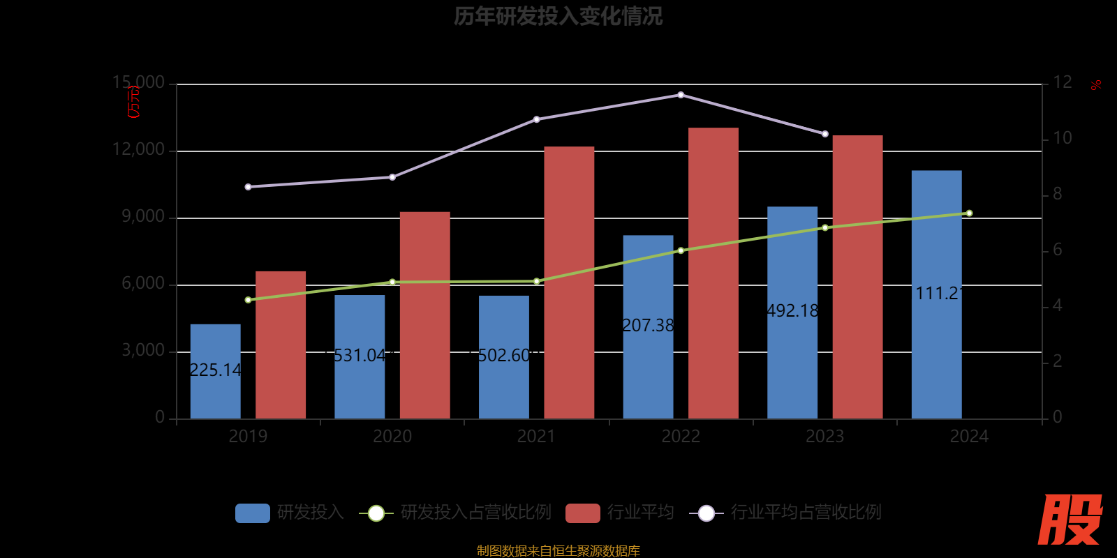 2024年全年,公司研发投入金额为1.11亿元,同比增长17.06%;研发投入占营业收入比例为7.36%,相比上年同期上升0.52个百分点。此外,公司全年研发投入资本化率为0%。