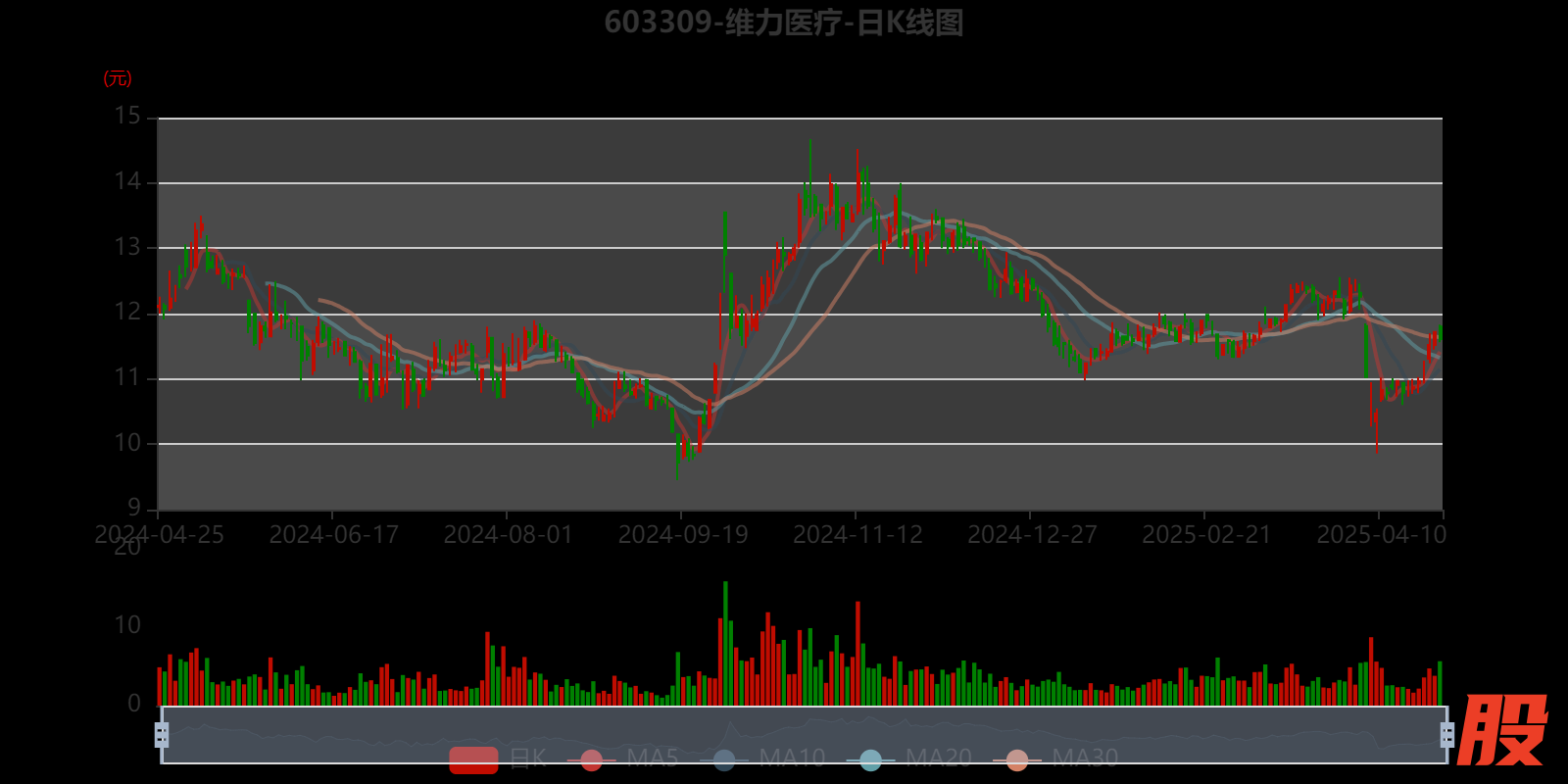 以4月24日收盘价计算,维力医疗目前市盈率(TTM)约为15.65倍,市净率(LF)约1.82倍,市销率(TTM)约2.27倍。