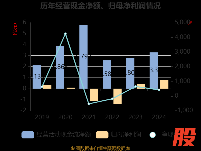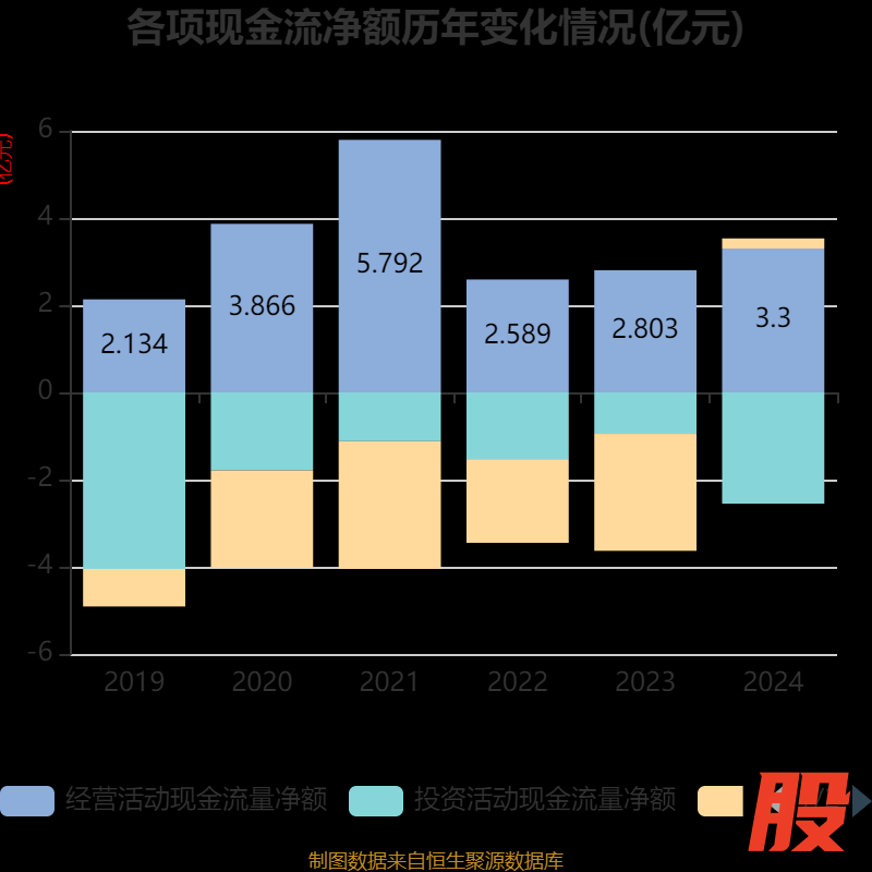 截至2024年,公司经营活动现金流净额为3.3亿元,同比增长17.75%;筹资活动现金流净额2324.39万元,同比增加2.92亿元;投资活动现金流净额-2.55亿元,上年同期为-9512.03万元。