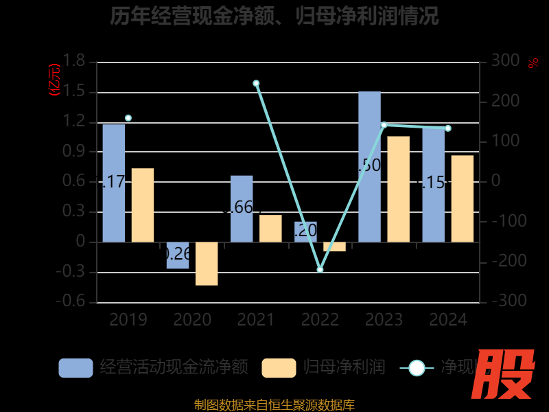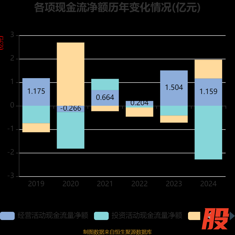 截至2024年,公司经营活动现金流净额为1.16亿元,同比下降22.9%;筹资活动现金流净额8005.15万元,同比增加1.1亿元;投资活动现金流净额-2.29亿元,上年同期为-4155.31万元。